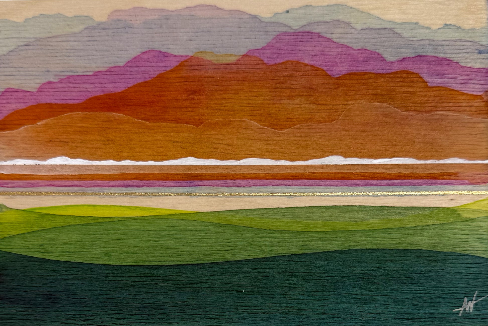 Acrylic wash and gold leaf on gallery depth birch panel.
