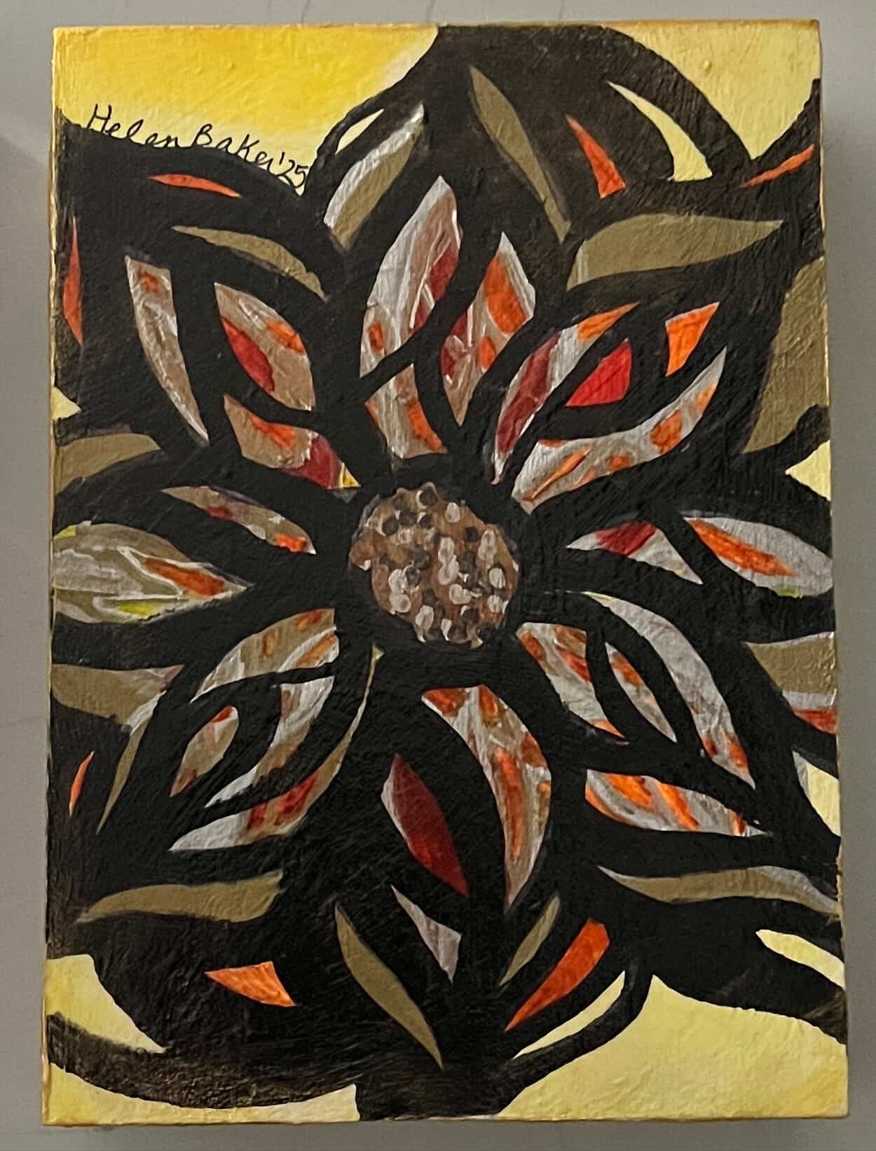 Acrylic on wooden cradleboard.
