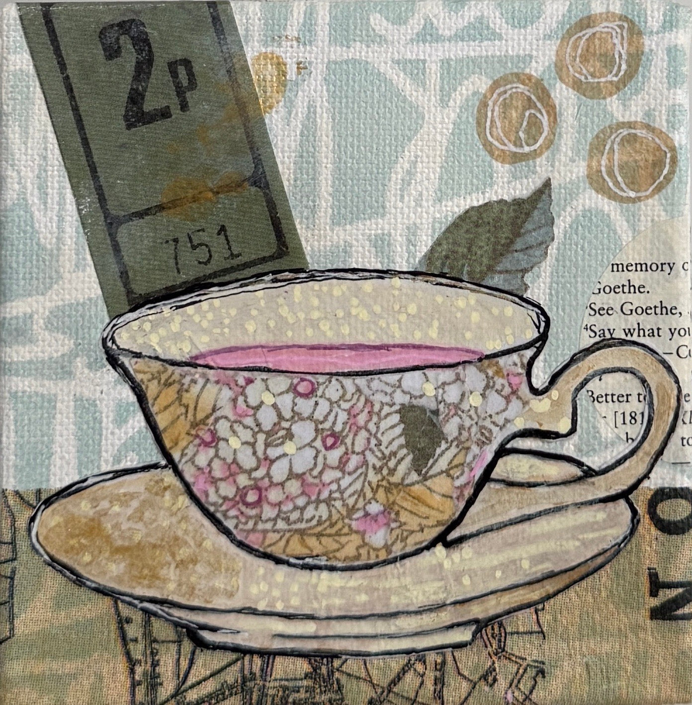 Acrylic + mixed media + collage on gallery canvas.