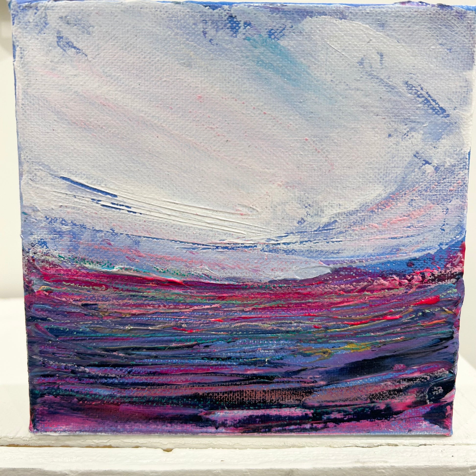 Acrylic and oil pastel on gallery canvas.