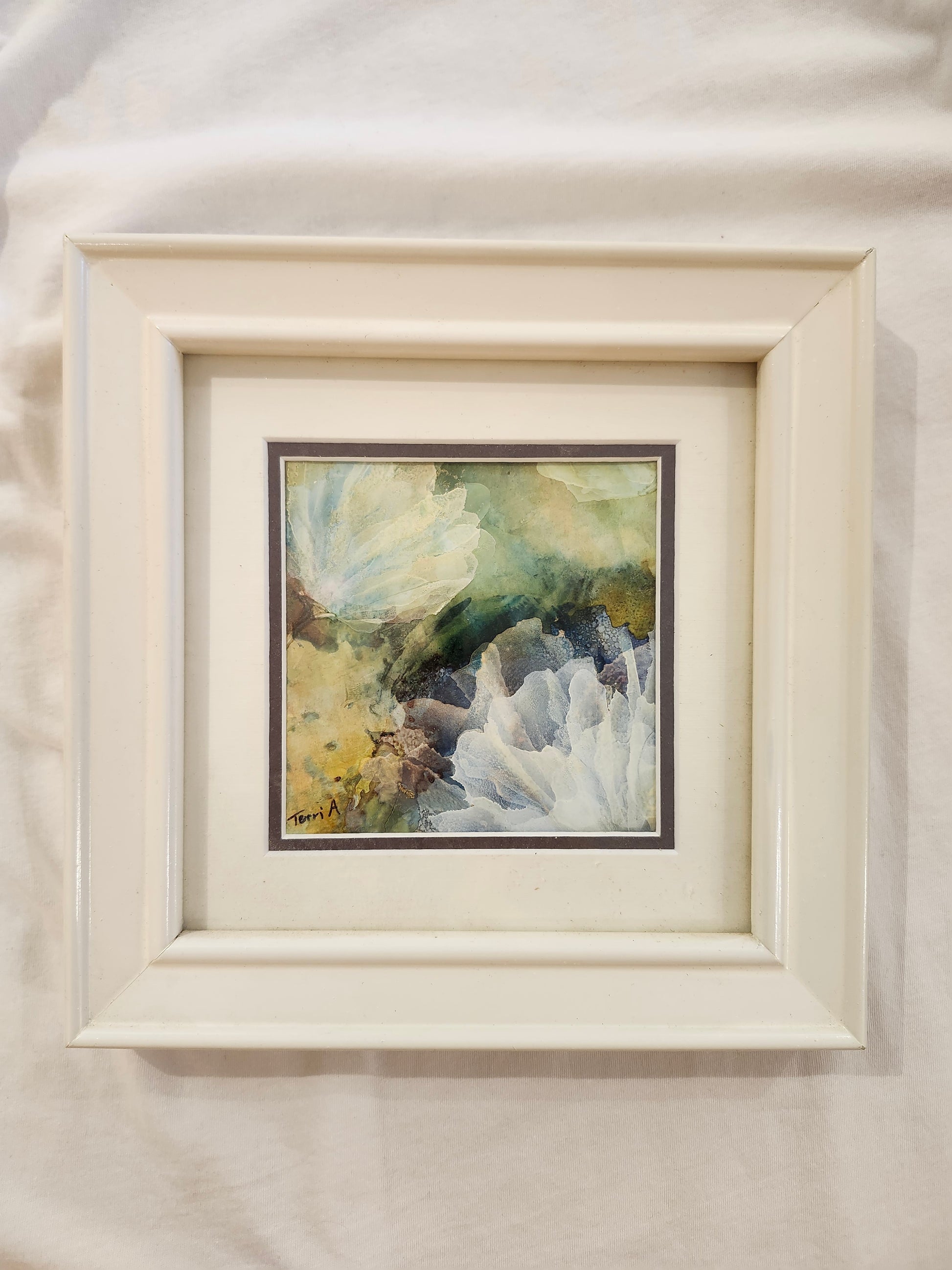 Alcohol Ink on yupo paper, then matted and framed.