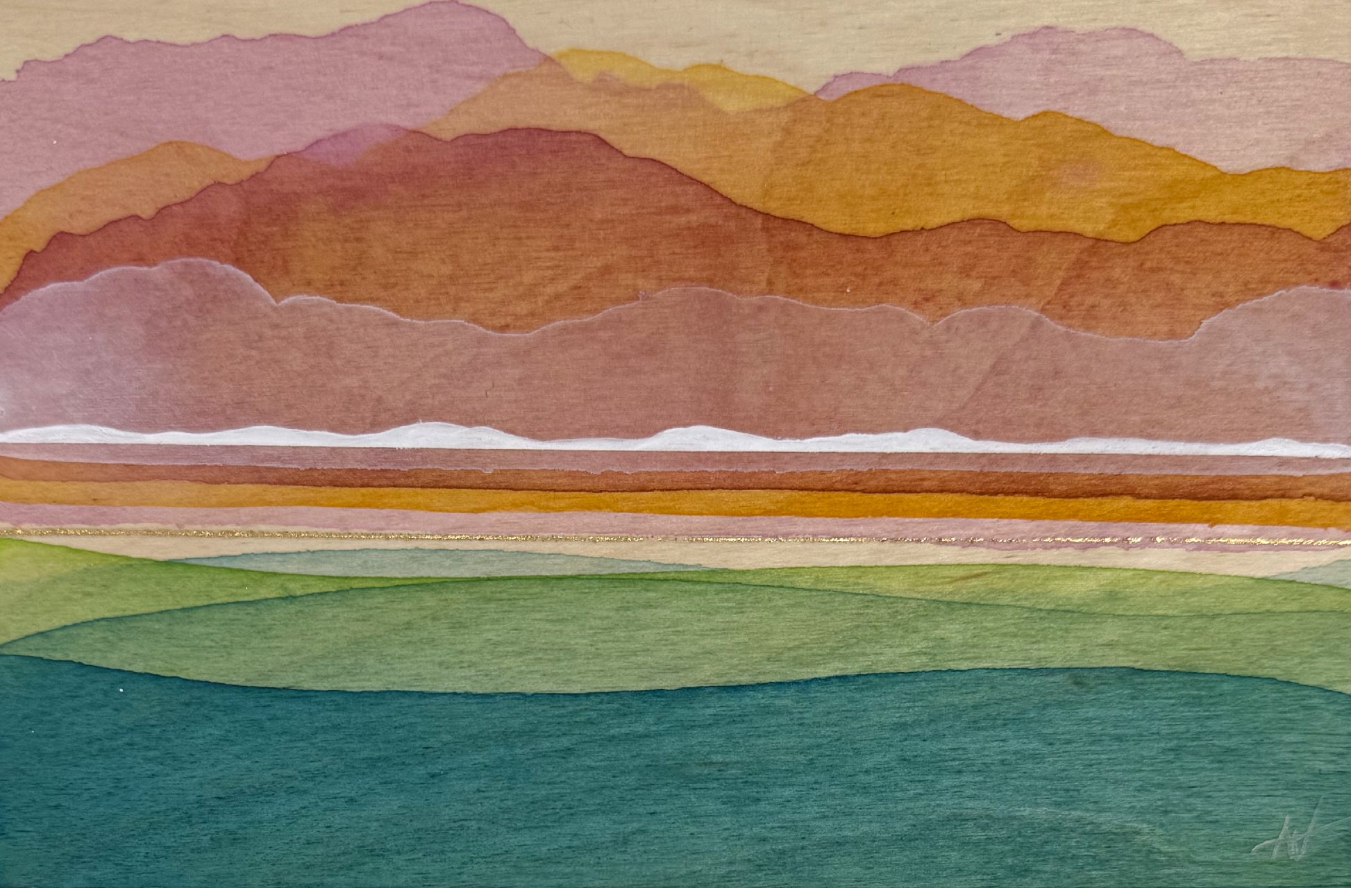 Acrylic wash and gold leaf on gallery depth birch panel.
