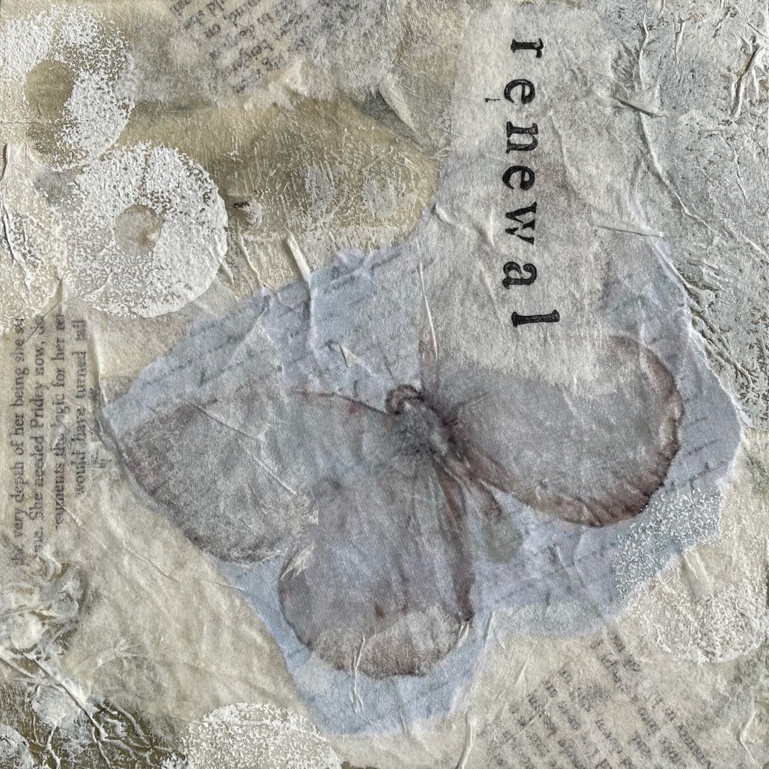 Mixed media + collage on cradled wood panel.