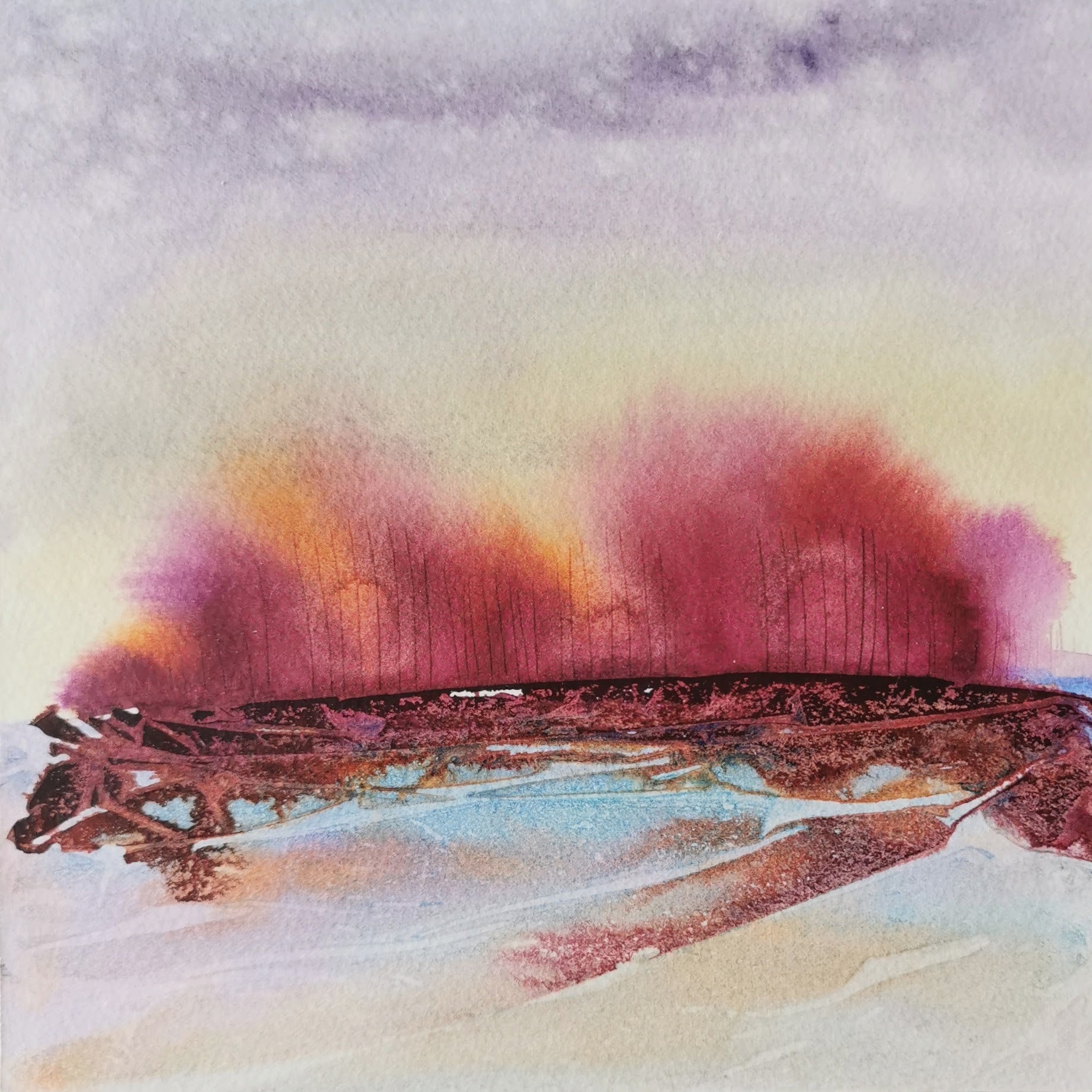 Watercolour and acrylic inks mounted on gallery depth cradled wood panel.