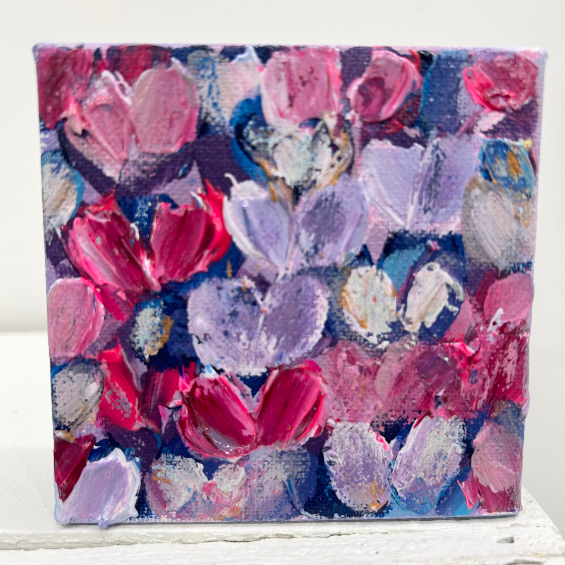 Acrylic and oil pastel on gallery canvas.
